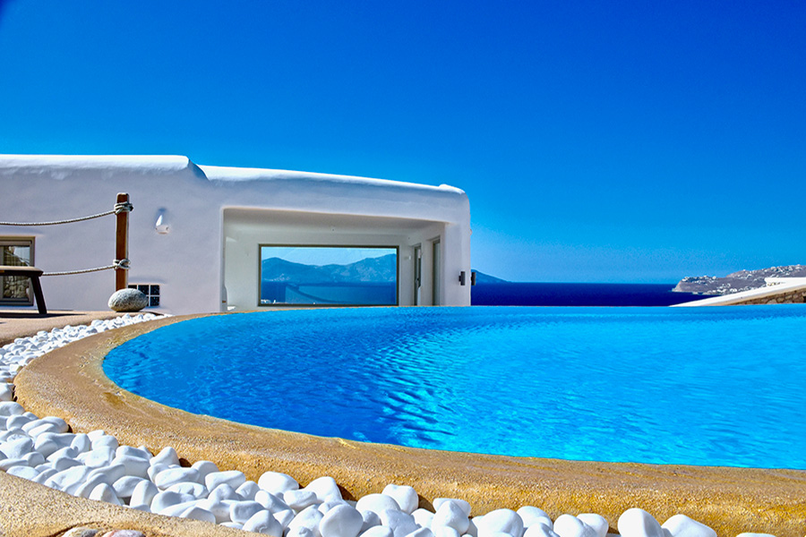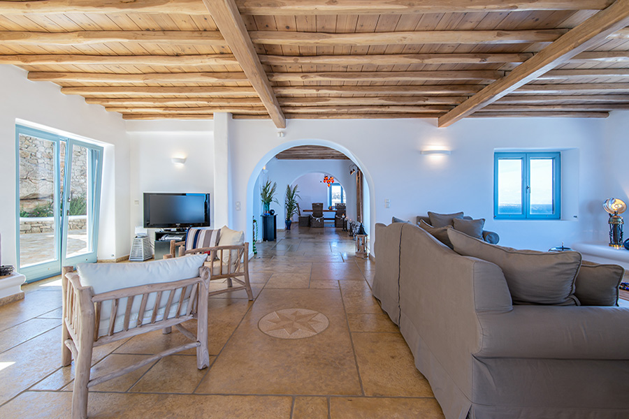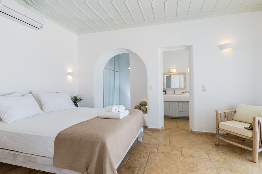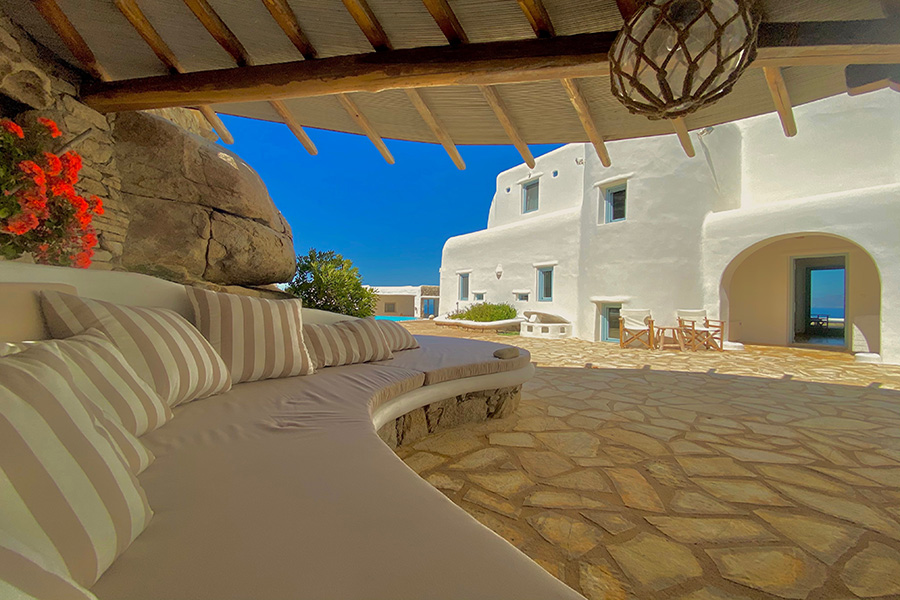 The main villa – a 5 bedroom en-suite residence – combines traditional Cycladic architecture & design, luxury and absolute privacy.